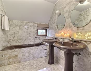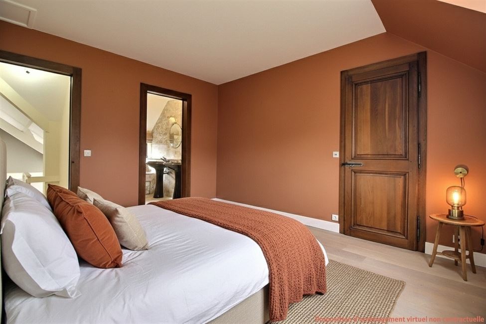 lui aussi agrémenté d'une cheminée, idéal pour les petits-déjeuners en famille ou les soirées décontractées. L'étage, un espace nuit pensé pour le confort et pour préserver l'intimité de chacun. Deux suites complètes dont une suite parentale d'envergure, chacune disposant de sa propre salle de bains. Deux chambres spacieuses complètent cet espace. Elles se partagent une salle de douche indépendante et un WC séparés sur le palier. À l'extérieur, la vaste terrasse devient une extension naturelle de la maison dès les premiers beaux jours. Côté pratique, le bien est parfaitement équipé pour répondre aux besoins d'une famille active avec deux grands garages sécurisés ainsi que de spacieuses caves avec un espace buanderie.