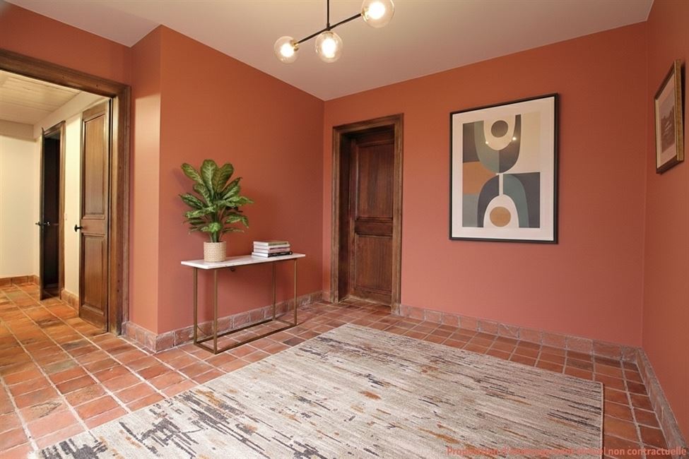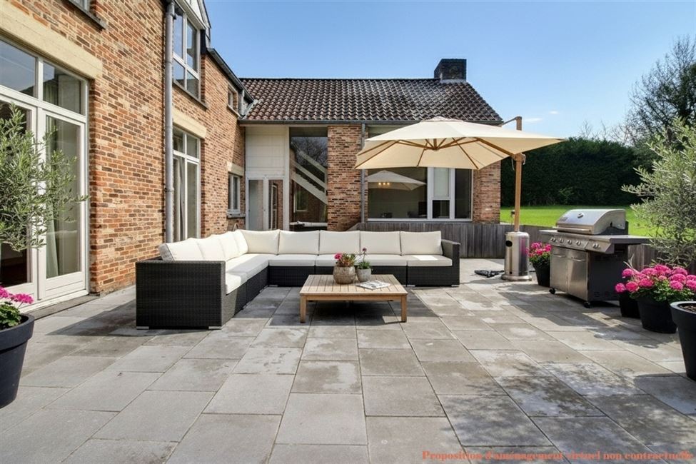 Nichée à Angoussart dans l’un des quartiers les plus recherchés pour son calme et sa qualité de vie, cette propriété de standing combine à merveille le charme architectural et une situation géographique stratégique (accès immédiat à l'E411). Établie sur un superbe terrain idéalement ensoleillé, elle offre un cadre de vie verdoyant et apaisant. Un rez-de-chaussée dédié à la convivialité. Dès l'entrée, l'espace et la lumière donnent le ton. Le hall d'accueil, avec vestiaire et commodités, mène vers un vaste séjour traversant baigné de lumière, il intègre une salle à manger élégante et un salon cosy articulé autour d'un authentique feu ouvert. Une cuisine familiale aux dimensions généreuses s'ouvre sur un second espace de vie chaleureux,